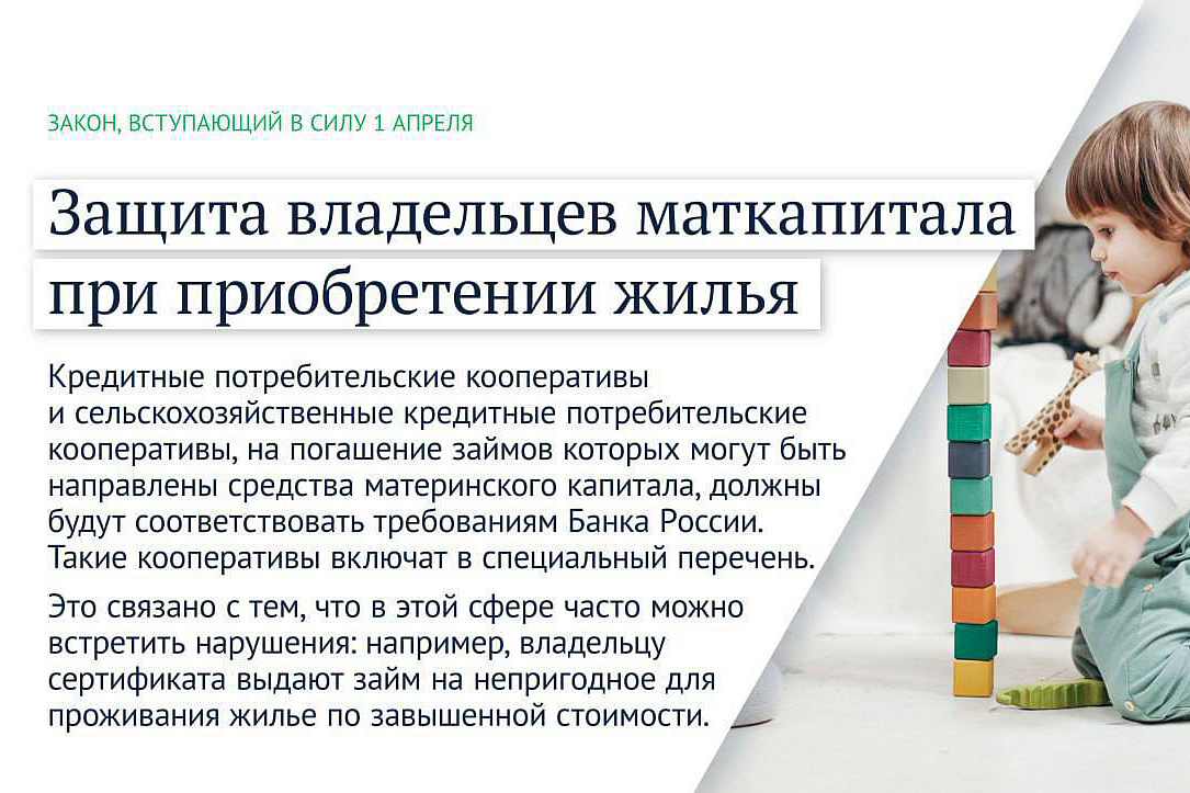«Важно, чтобы граждане могли эффективно распоряжаться средствами маткапитала. Закон позволит снизить количество нарушений при направлении его на покупку жилья, защитит от мошенничества в этой сфере», - отметил Володин.