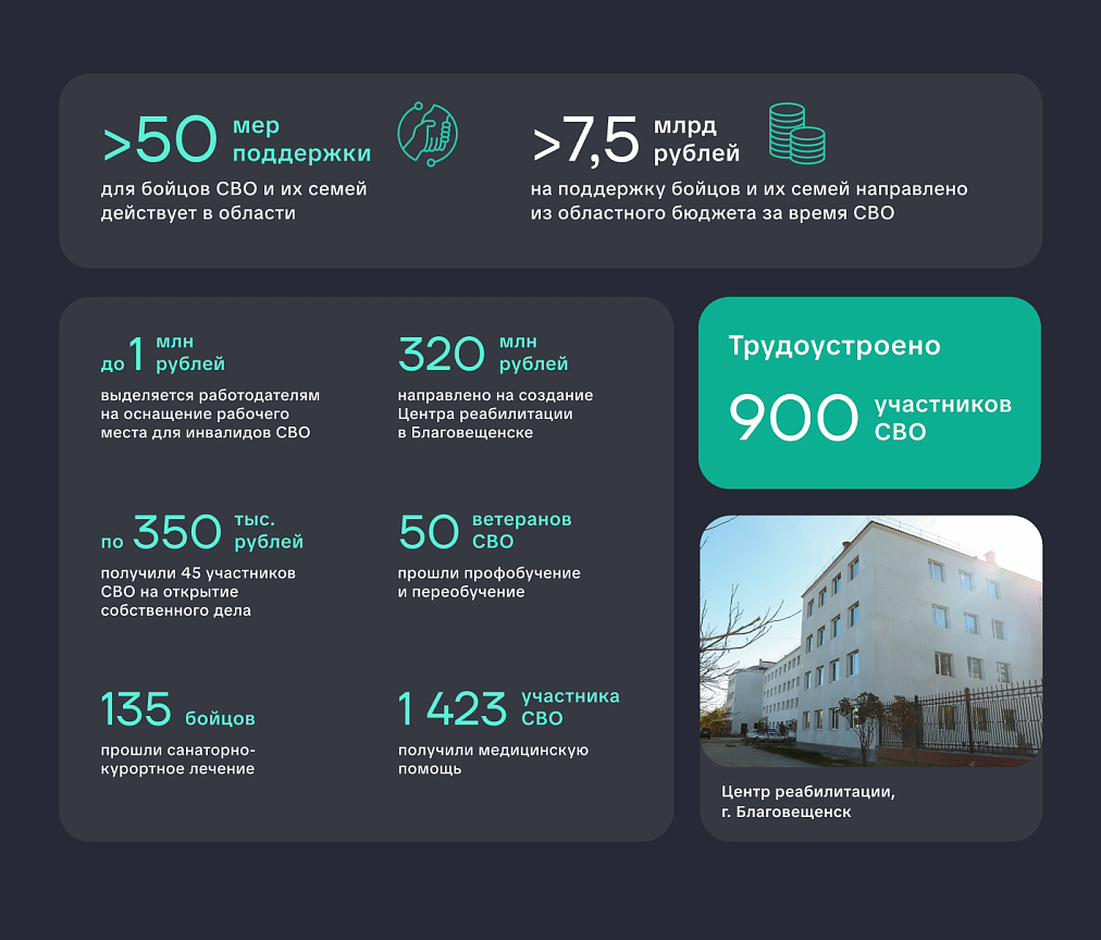 В сфере здравоохранения в Приамурье успешно работает практика «зелёного коридора» — в каждой больнице выделен отдельный день для приёма участников СВО. Этот опыт одобрен Минздравом России и рекомендован к распространению в других регионах. Ветераны имеют право на внеочередное санаторно-курортное лечение, зубопротезирование и высокотехнологичную помощь. С начала года лечение прошли уже 1,5 тысячи человек. Важным шагом станет открытие в следующем году в Благовещенске современного реабилитационного центра на улице Октябрьской. Его капитальный ремонт близится к завершению. На создание центра направил 320 миллионов рублей. Ежегодно реабилитацию там смогут проходить до 1,5 тысячи ветеранов со всей области.