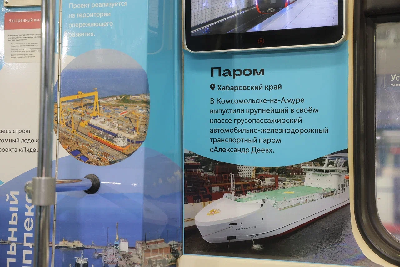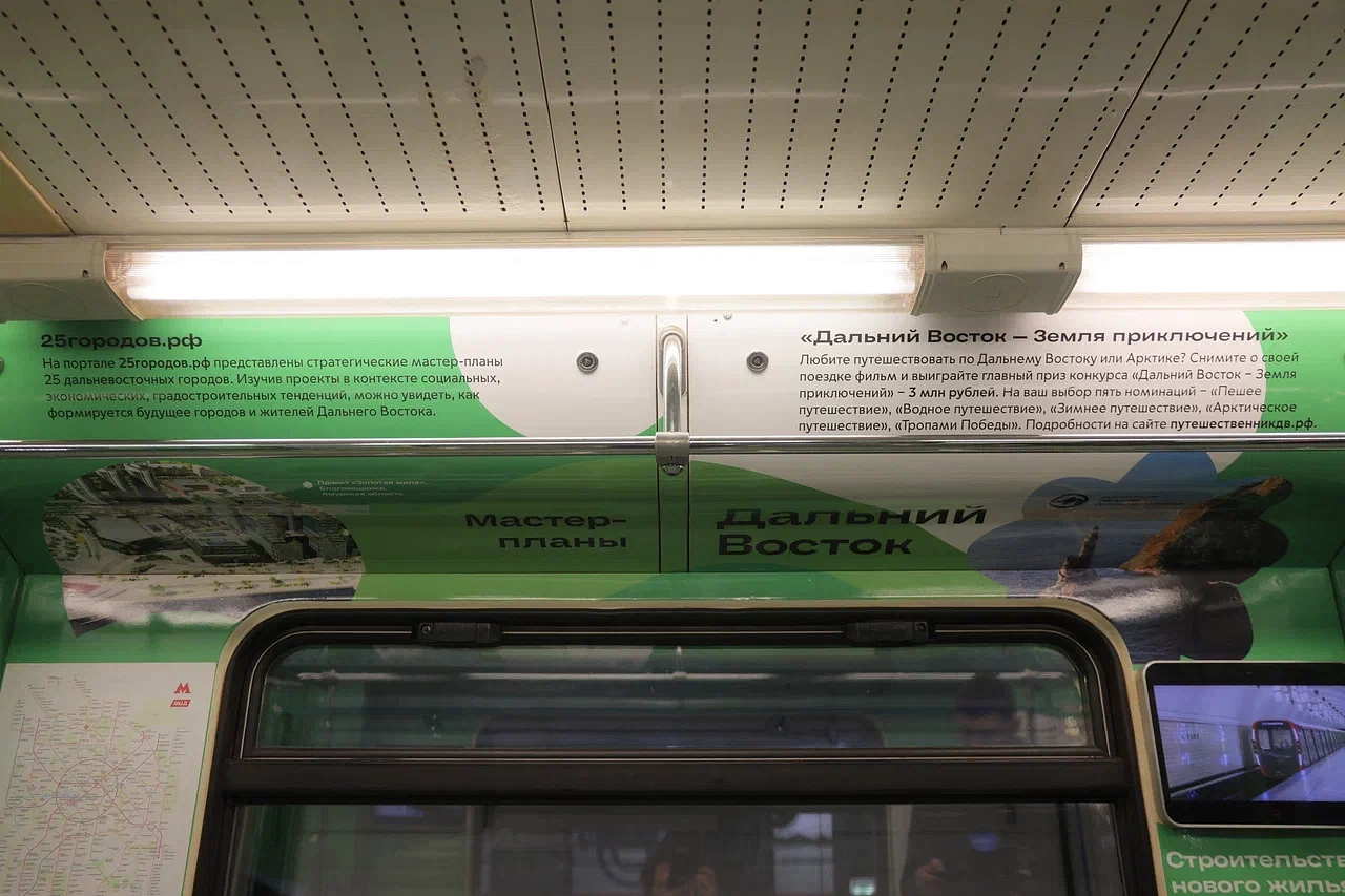 Поезд появился в московском метро в восьмой раз. Его запустили в рамках комплекса воспитательно-патриотических мероприятий «Дни регионов Дальнего Востока в Москве». Пассажиры брендированного поезда смогут познакомиться с главными брендами Дальнего Востока: природой, ключевыми проектами, возможностями для учёбы, работы, бизнеса и комфортной жизни всей семьёй.