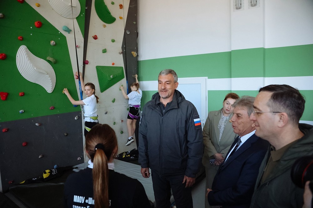 Василий Орлов пригласил учительницу и команду школы в патриотический центр «Авангард», где есть уличный скалодром, и поручил минобру области совместно с городской администрацией проработать возможность установки аналогичного объекта в Белогорске.