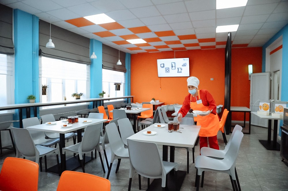 Кроме спортзала, делегация посетила школьное кафе, где недавно завершились работы. В помещении сделали капремонт, обновили мебель. В пищеблоке также провели обновление и приобрели новое кухонное оборудование. Василий Орлов положительно оценил результат и отметил, что к современному стандарту кафе нужно привести все школьные столовые в городе.